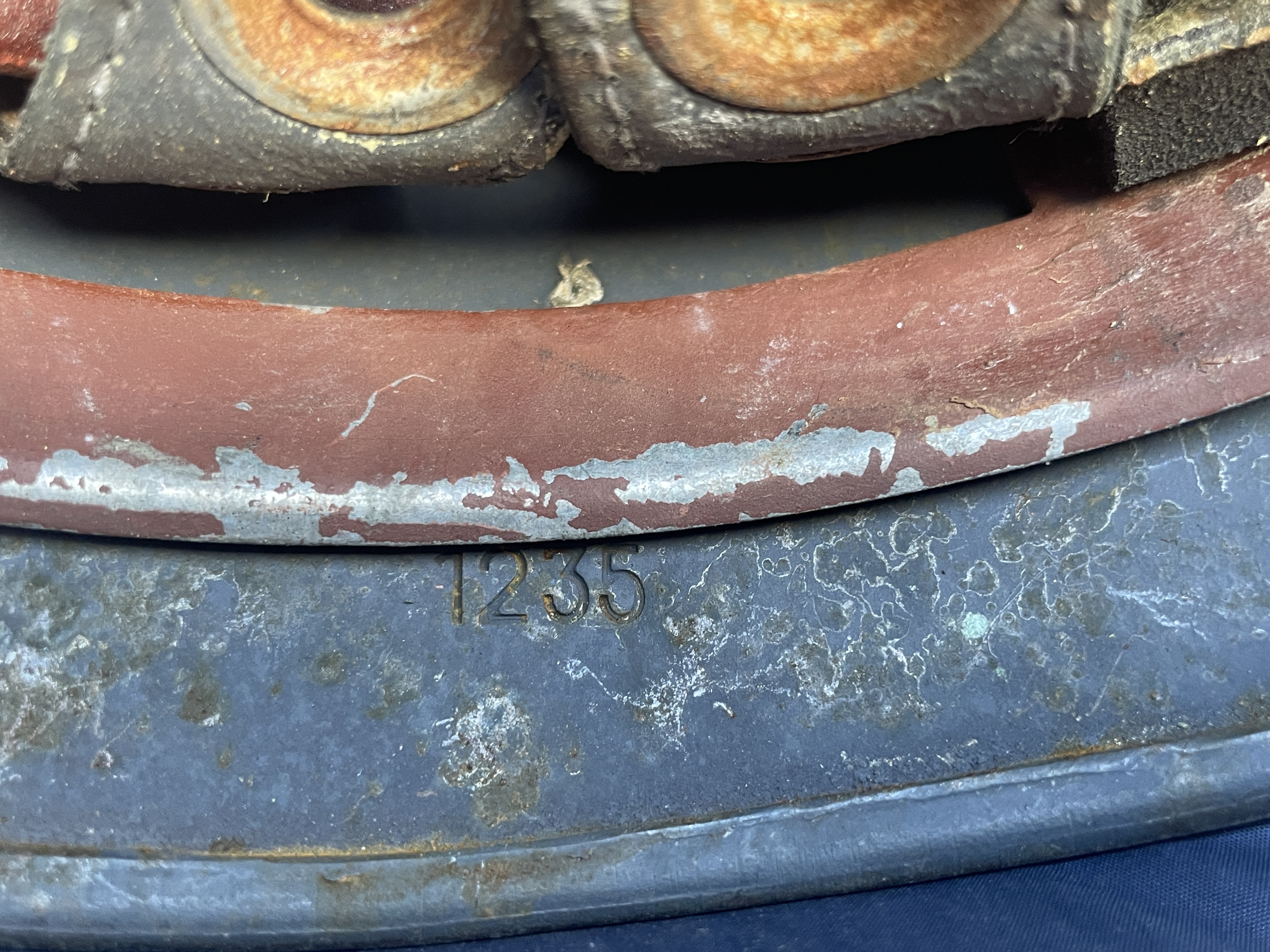 (Every original German helmet produced from 1935 to 45 had two factory stampings punched into the side and rear or both in the rear. The alpha numeric number refers to the factory location and the inside metric circumference in centimeters. The rear lot number refers to the production run and was used as a quality control measure. The font styles used at each factory were slightly different but highly consistent throughout the war and so fakes or reproductions will either not have these numbers at all or they will use the wrong font style or letter spacing and so are easily identified as post war made.)