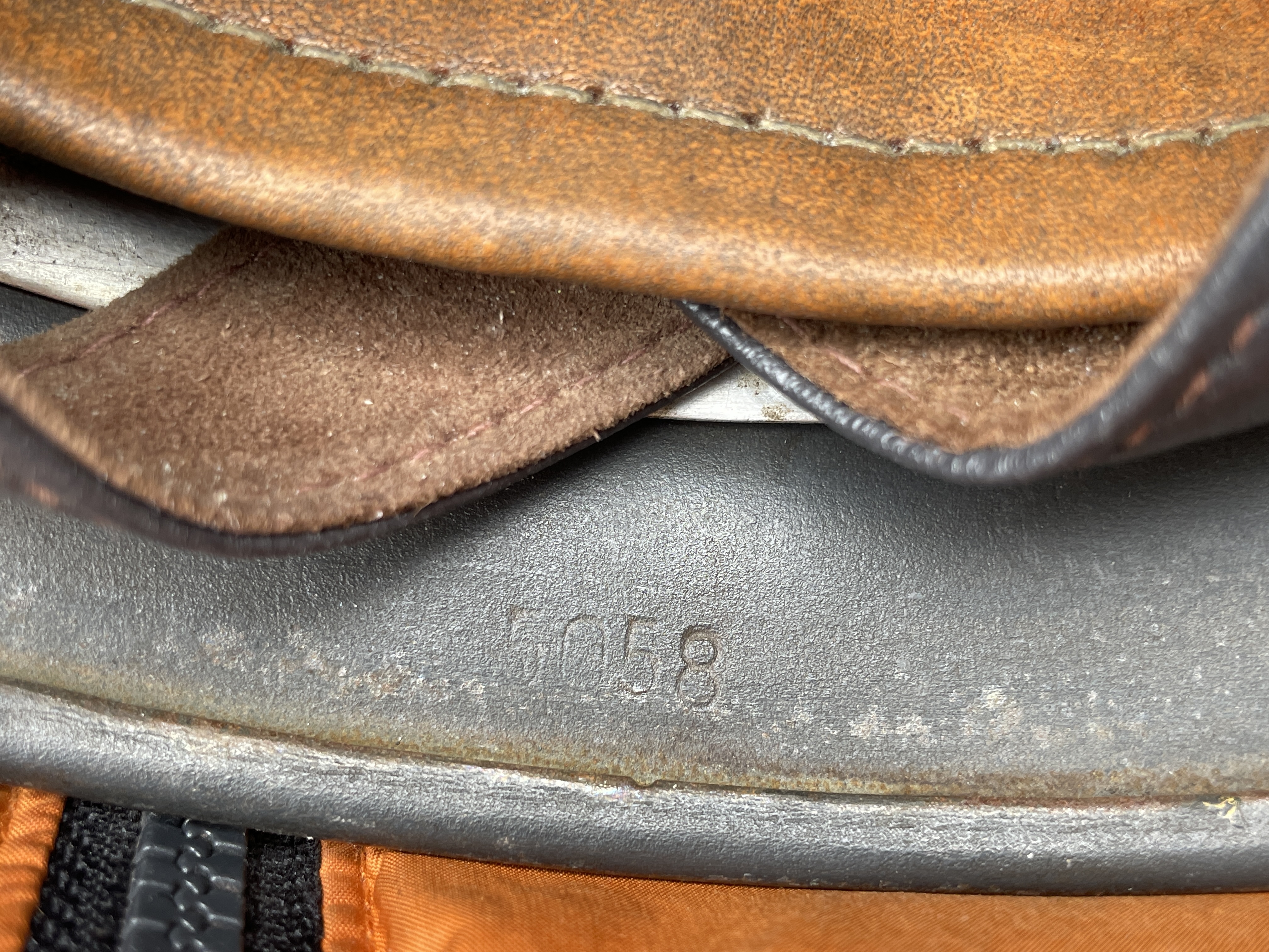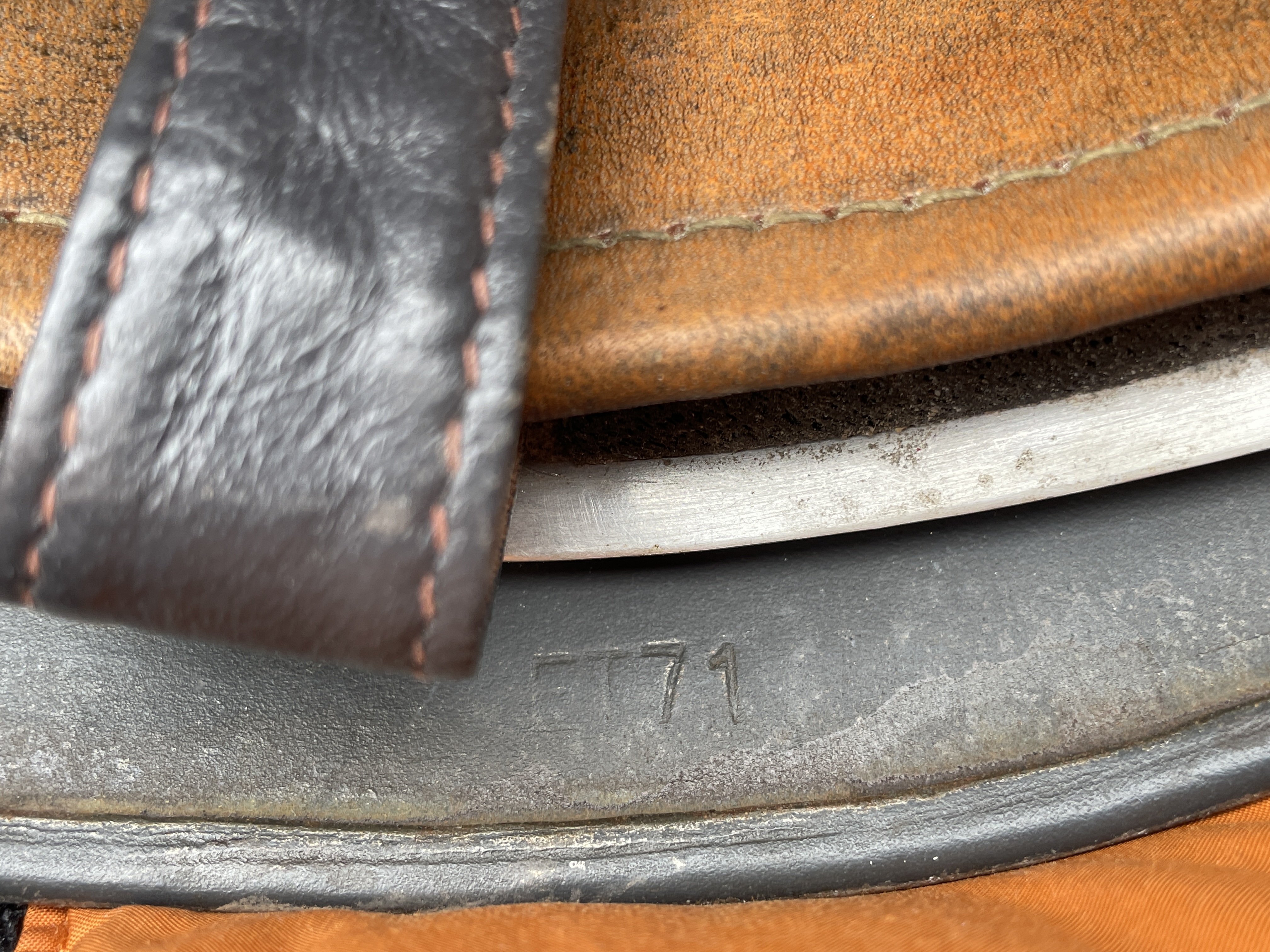 (Every original German helmet produced from 1935 to 45 had two factory stampings punched into the side and rear or both in the rear. The alpha numeric number refers to the factory location and the inside metric circumference in centimeters. The rear lot number refers to the production run and was used as a quality control measure. The font styles used at each factory were slightly different but highly consistent throughout the war and so fakes or reproductions will either not have these numbers at all or they will use the wrong font style or letter spacing and so are easily identified as post war made.)