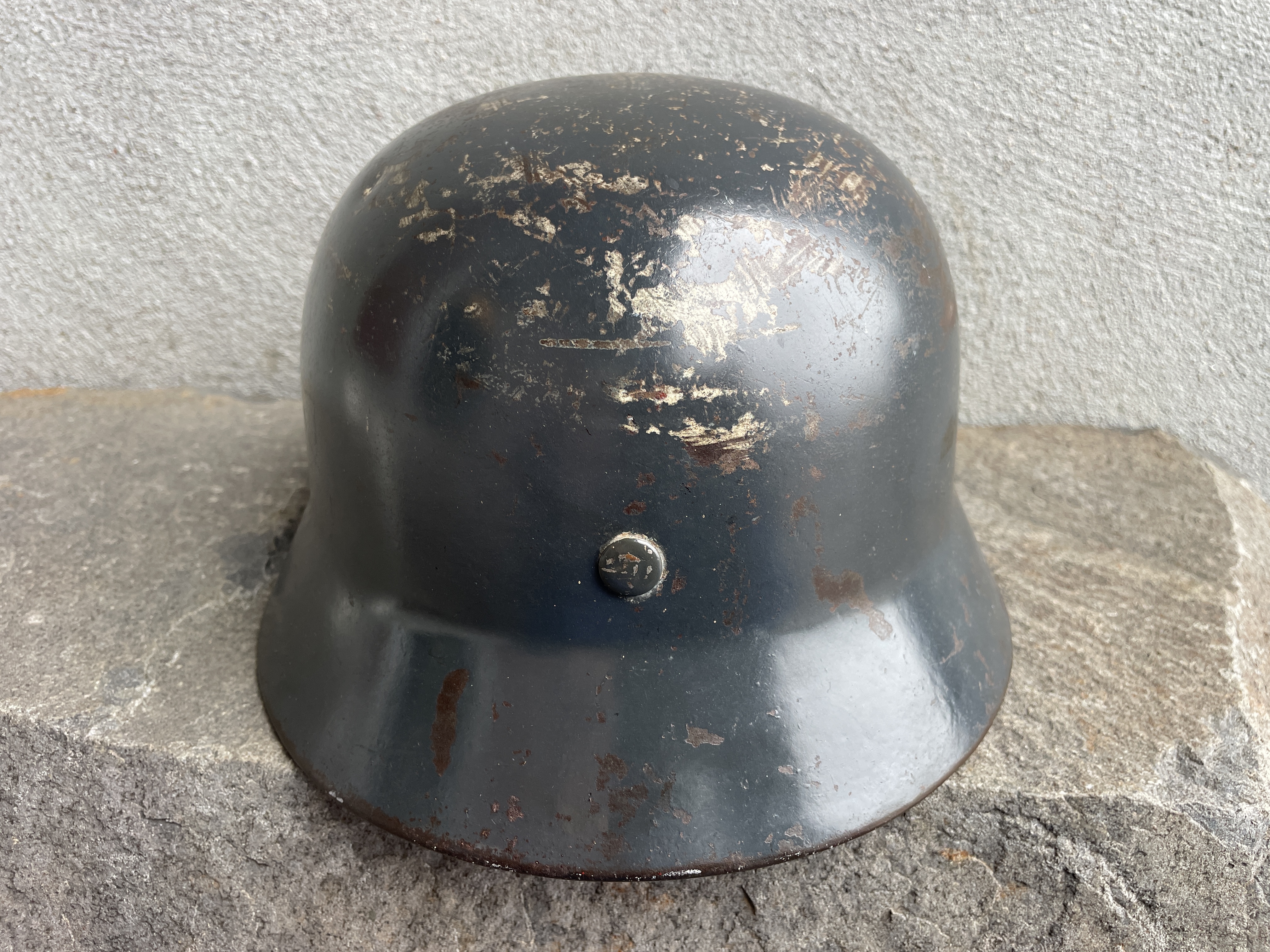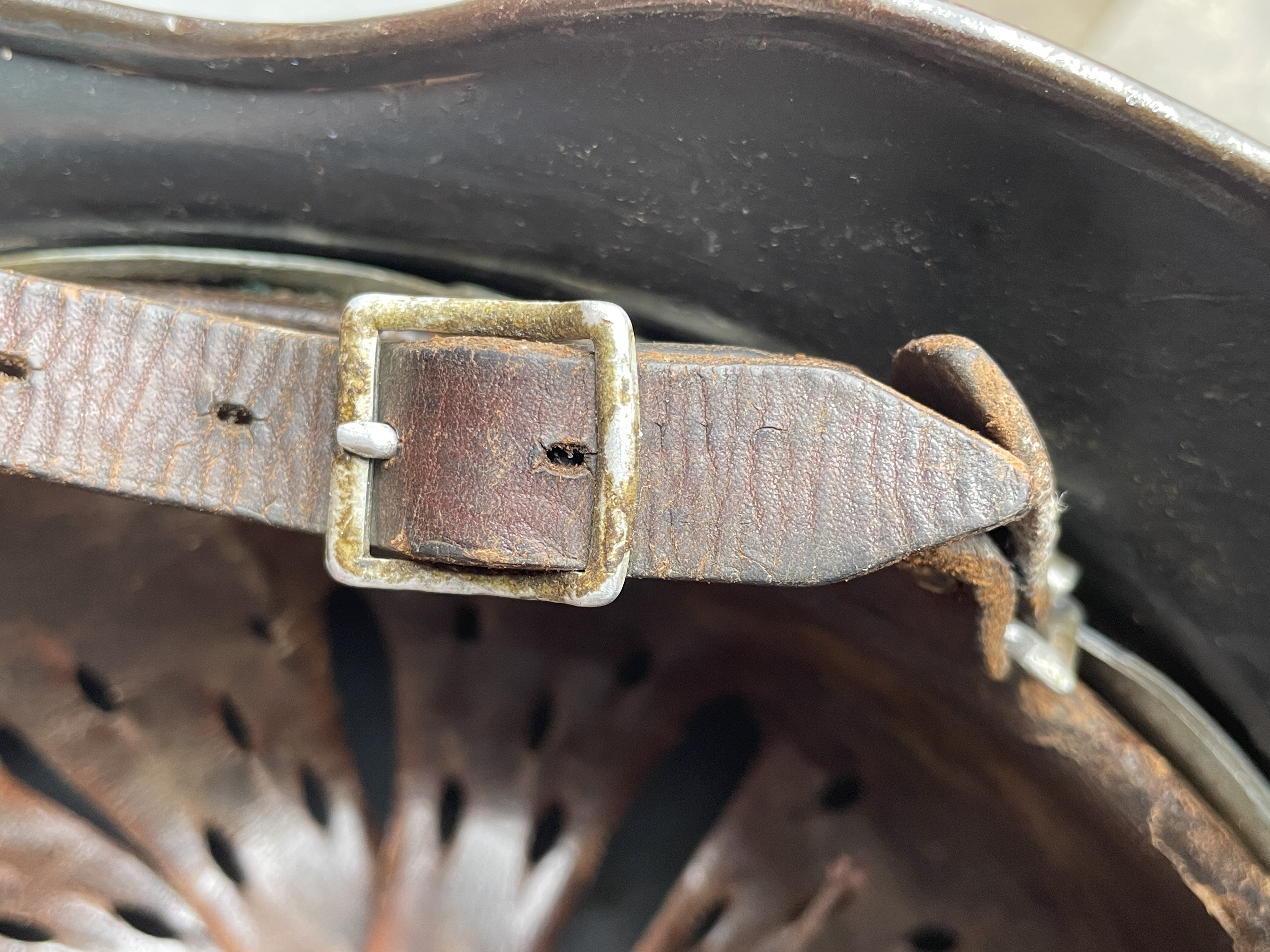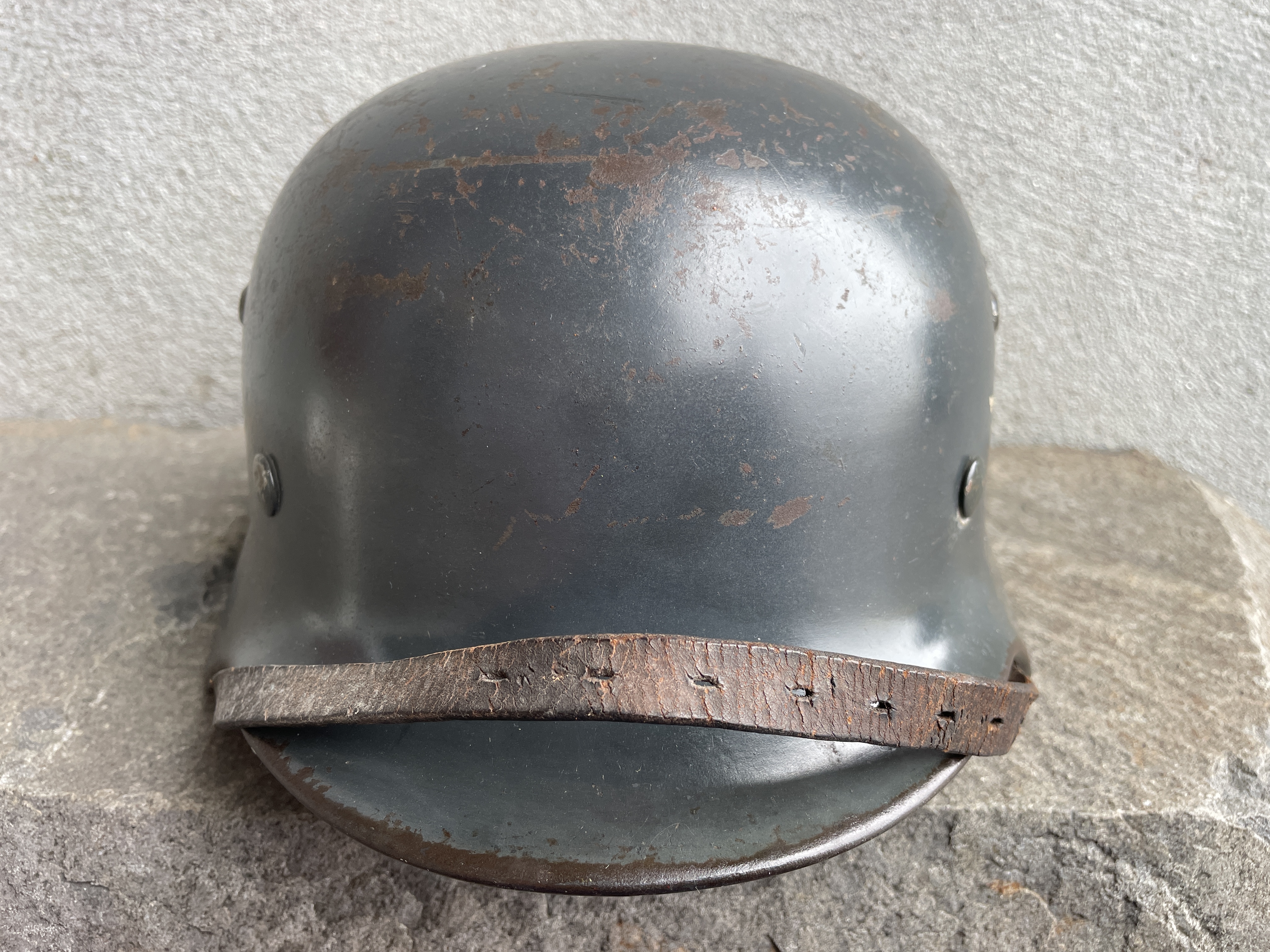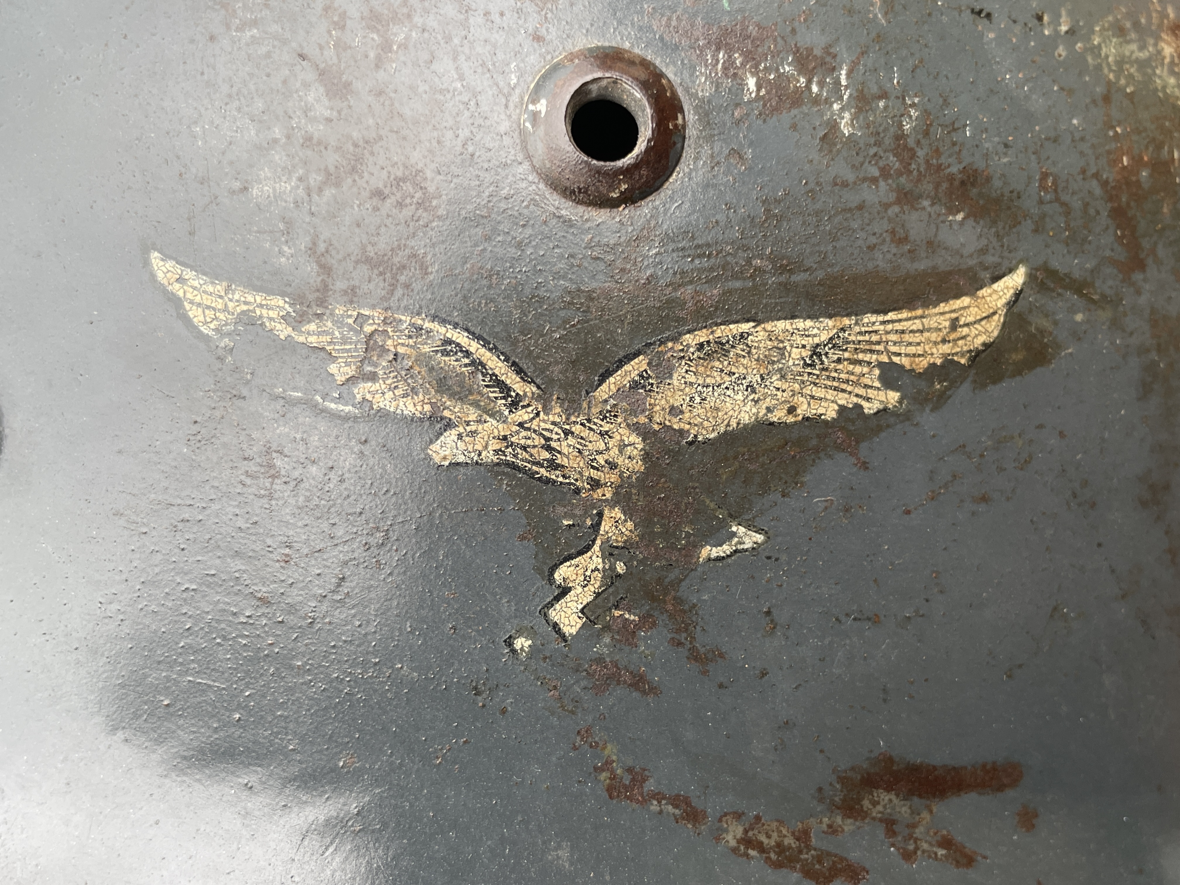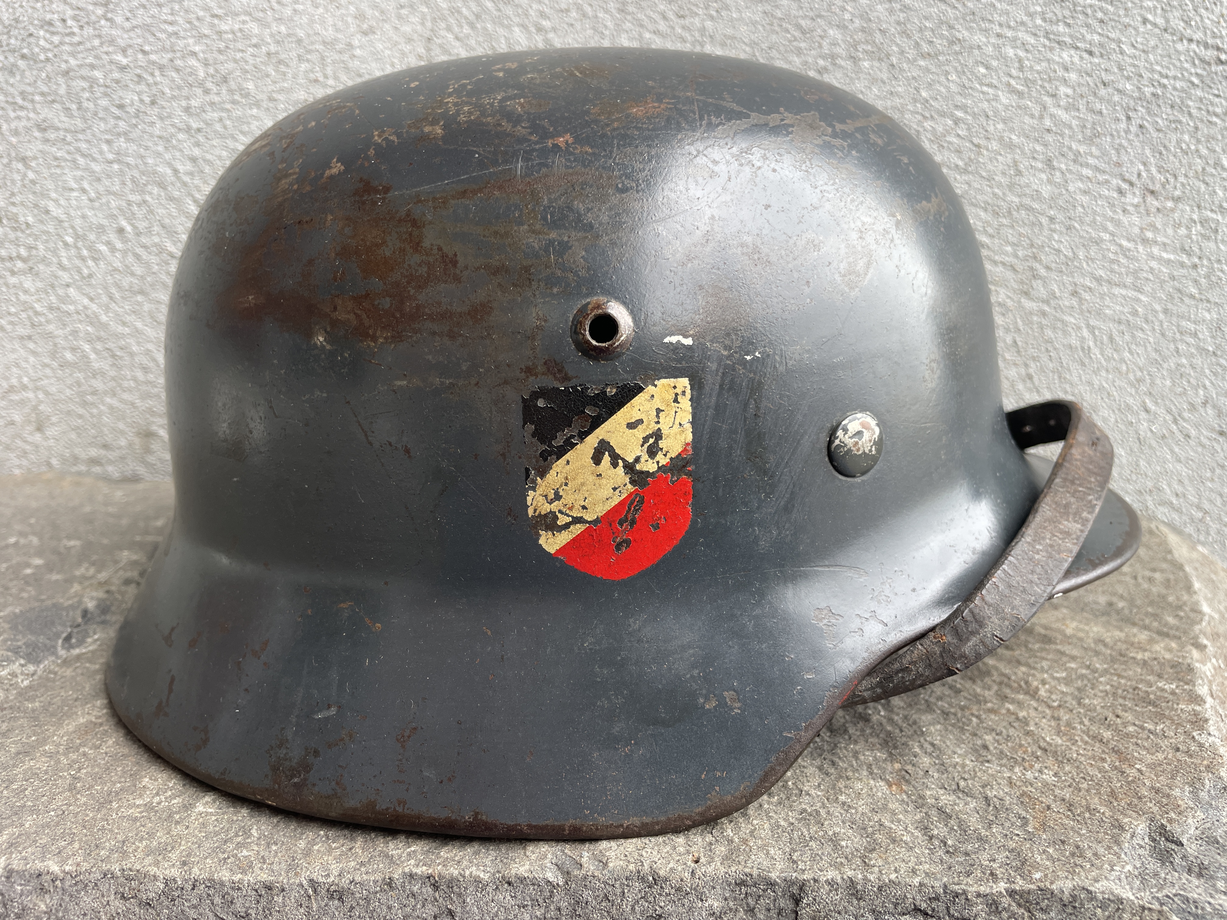 I would still like to flip the chinstrap back around to the correct side as well as add the missing swastika to the eagle's talon as a fully reversible restoration of the decal to make the helmet's appearance more complete.