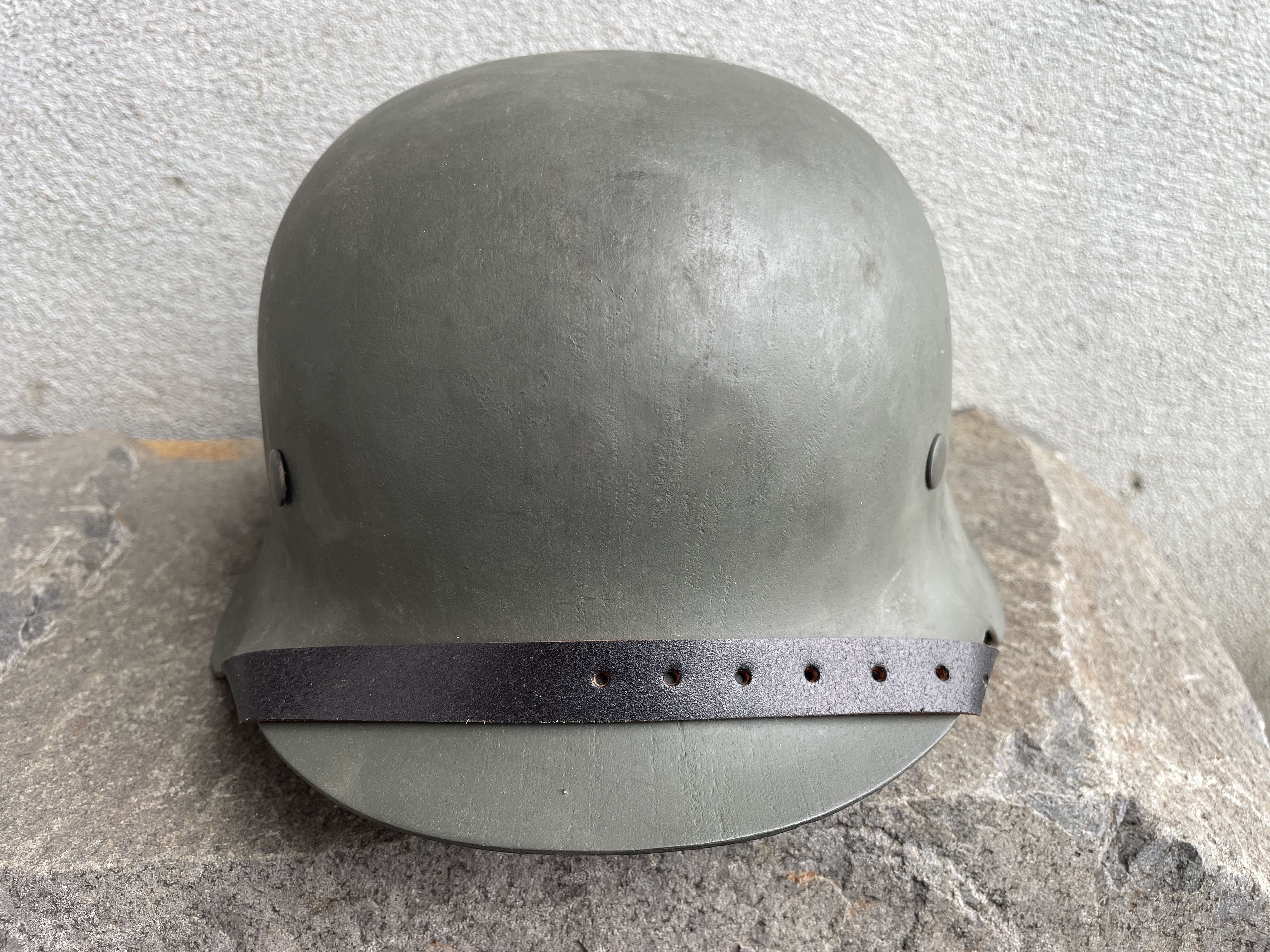 A new category of helmets has now been created here on the website referred to as "Tribute Restorations". These particular helmets differ from the vast majority of regular original German helmet shells I use in that the rear lot number matches up to either a known Waffen SS or Kriegsmarine helmet according to Brian Ice's extensive data book. Generally speaking SS lot numbered helmets or KM lot numbered helmets represent only about 1/100 with most linking back to Heer or Luftwaffe. My mission here is to try and roll back the clock as best I can and make these helmets as they would have appeared during the war. Historically accurate decals and the correct paint color and texture are essential in this endeavor. My efforts as a "tribute" to the battle hardened experiences of all those men who fought in WW2.