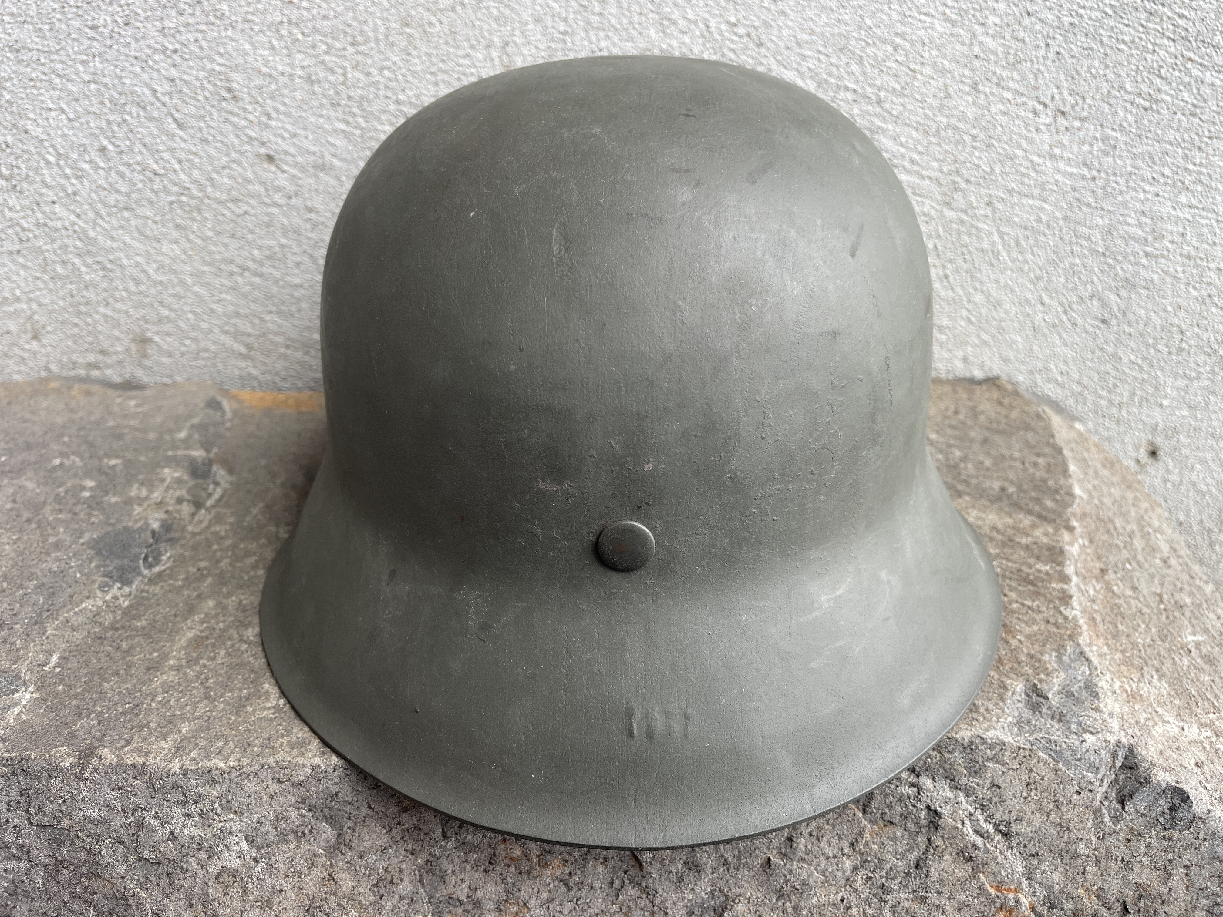 Brought back by popular demand I was recently able to identify this matching SS lot numbered helmet among a number of original shells I was fortunate enough to get my hands on. This M42 EF64 has a clearly stamped rear lot number 1281 which according to Brian Ice's lot data book means that this originally did leave the factory as an SS helmet in late 1942 and so was most likely used during the war by this same branch of service.