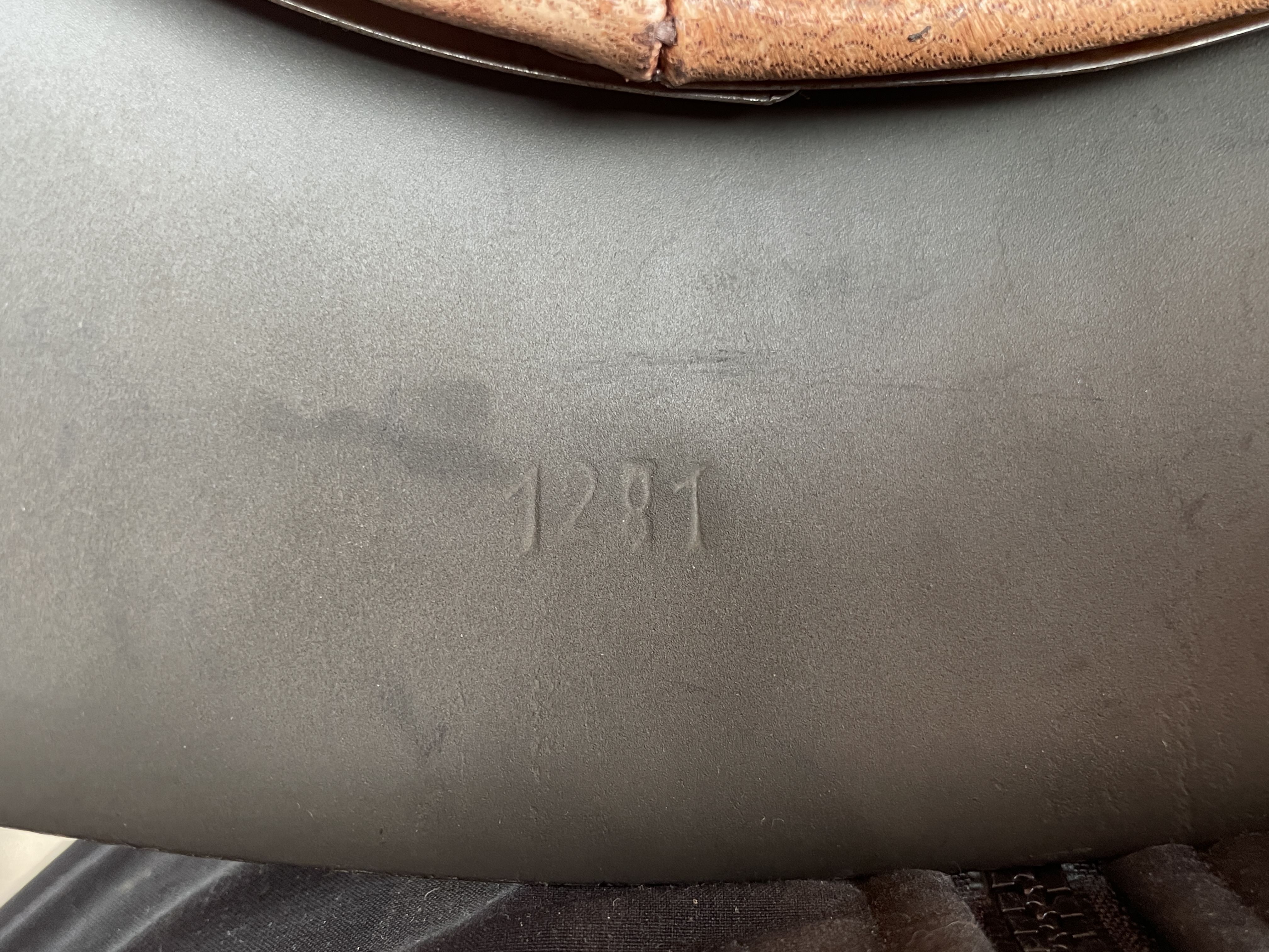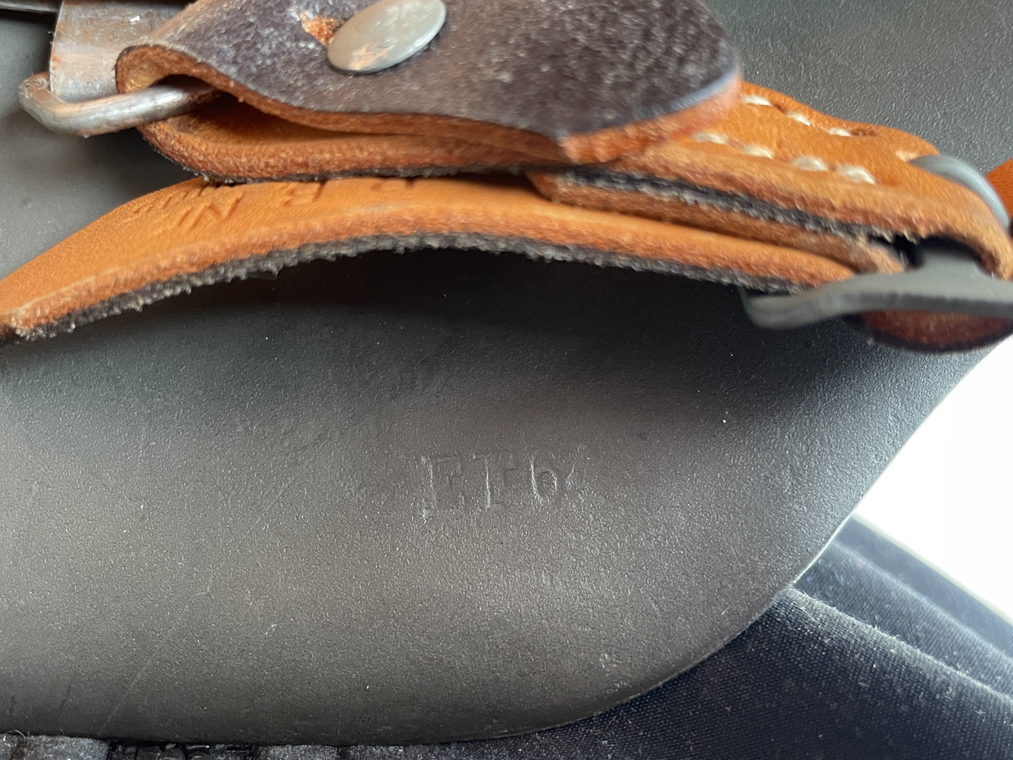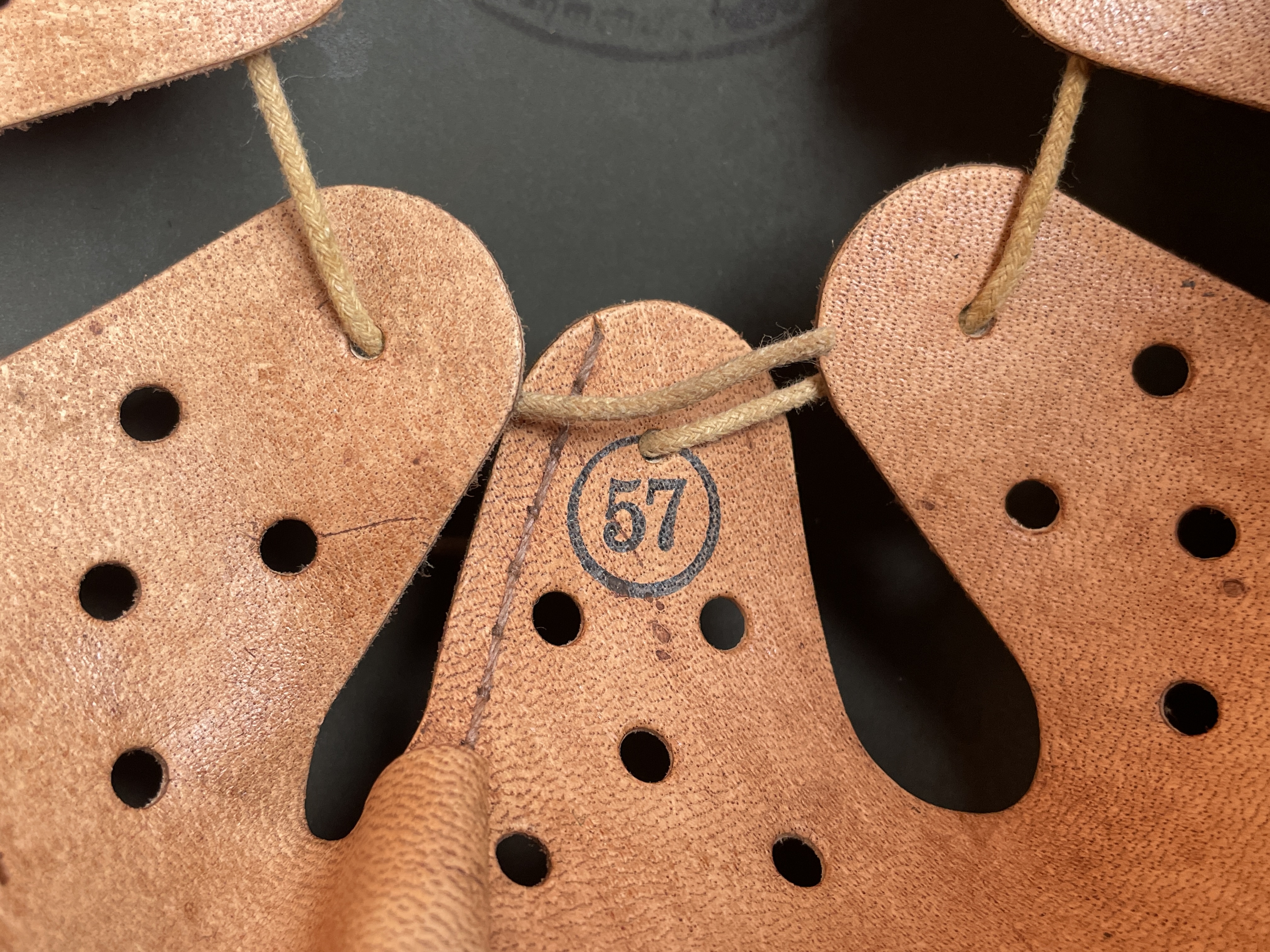 This helmet was original painted in 1950's Czech black paint which although ugly to look at definitely served the helmet well by preserving the underlying steel from the elements over time. Most EF helmets have very weak stampings with barely visible factory markings but this helmet is a nice exception to that rule with clearly legible alphanumeric indentations so much so that you can actually see the rear lot protruding slightly from the back skirt.