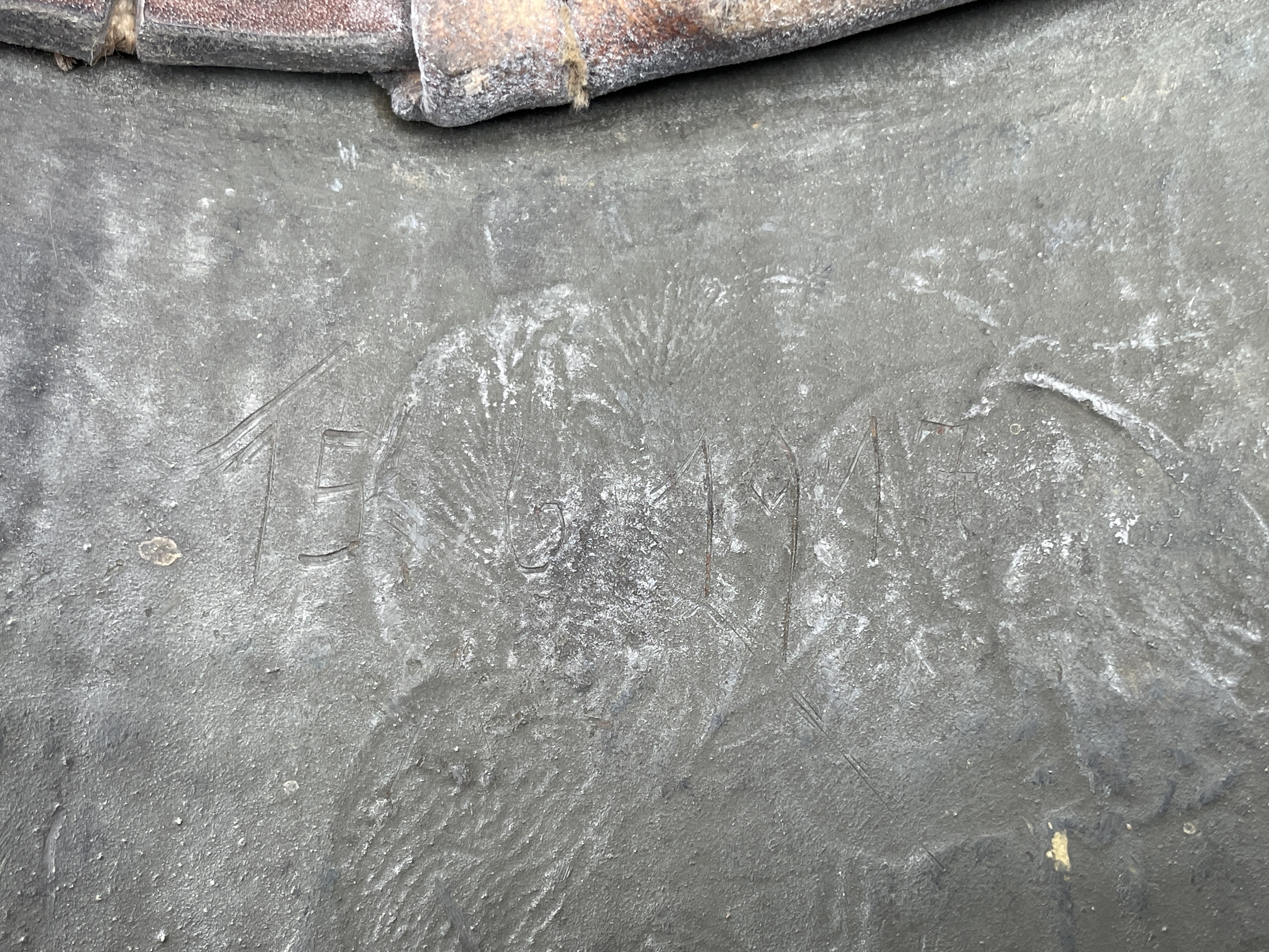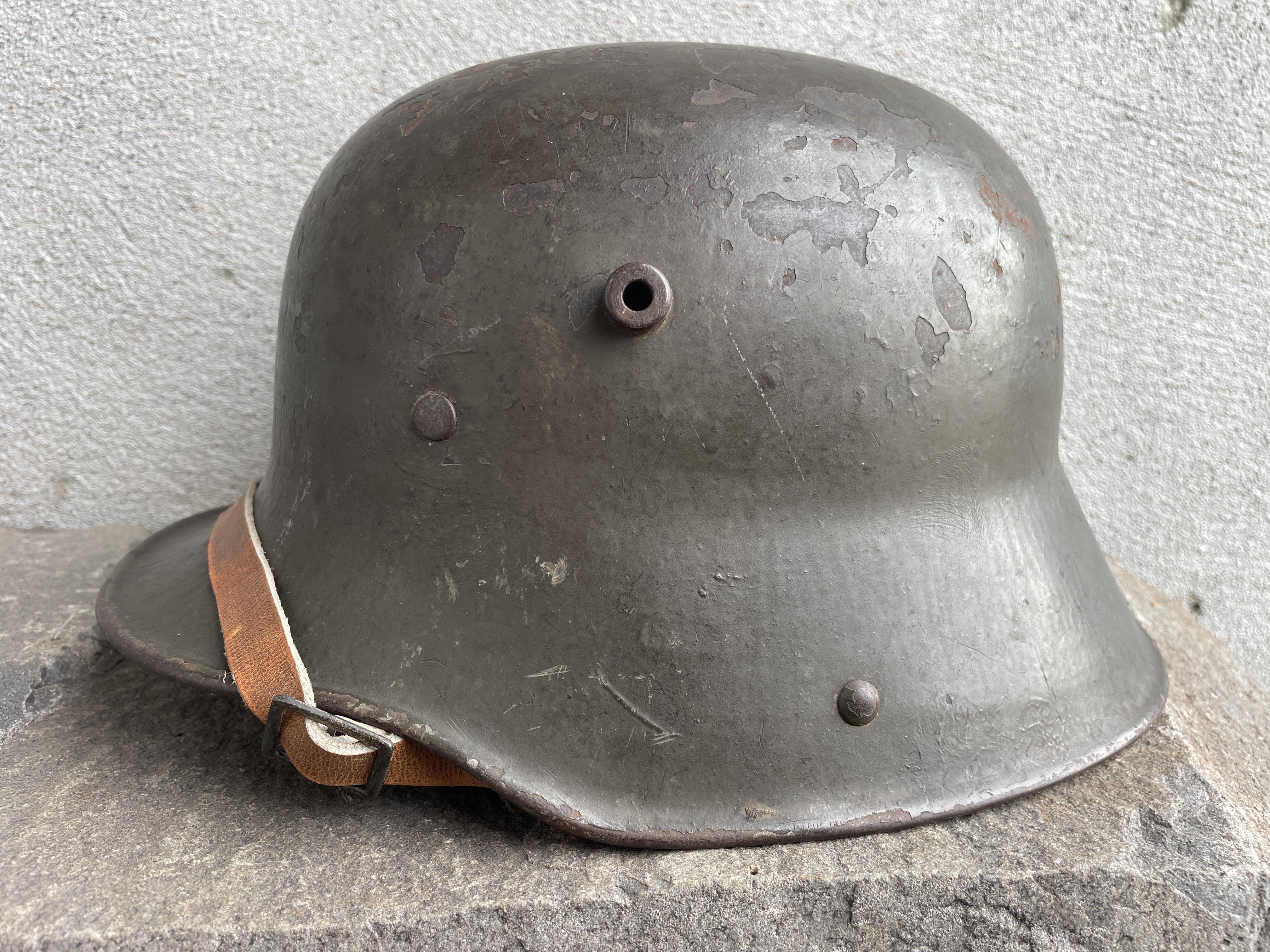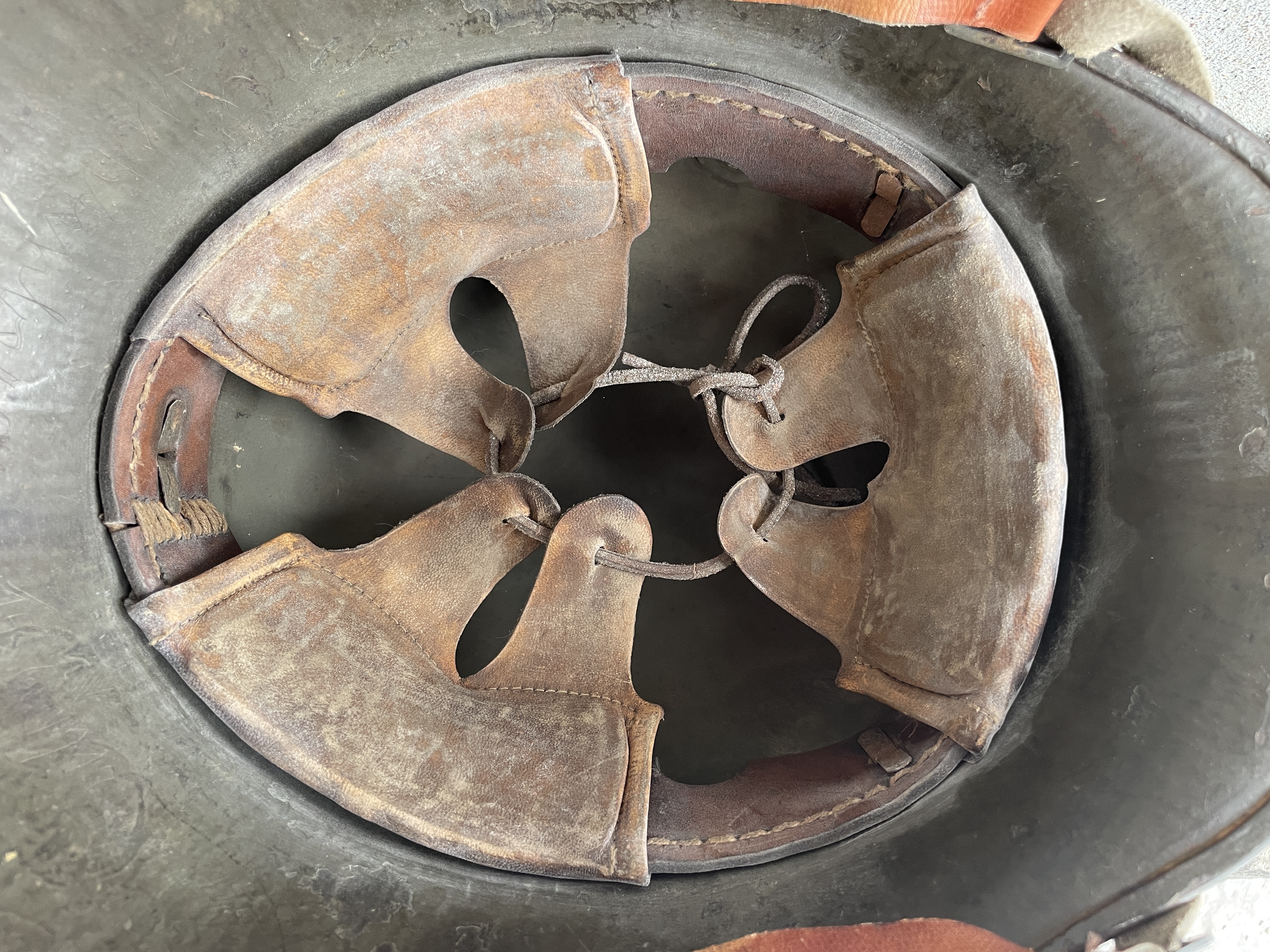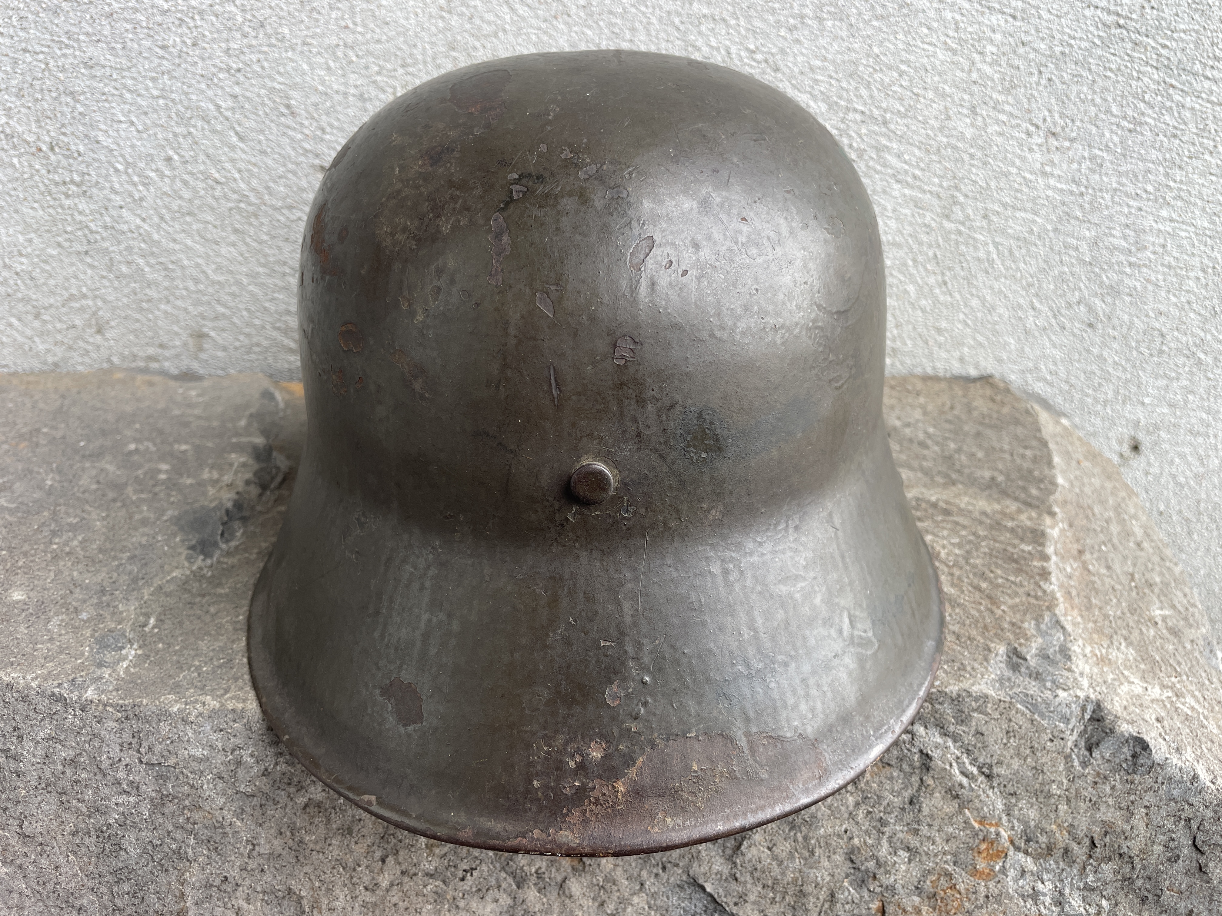A very interesting highlight of this helmet is that at the back skirt the original German solider engraved his name and date in what must have been a pocket knife the following words: "Lichtenberger 15, 6, 1917" which must refer to his last name and date June 15, 1917.
